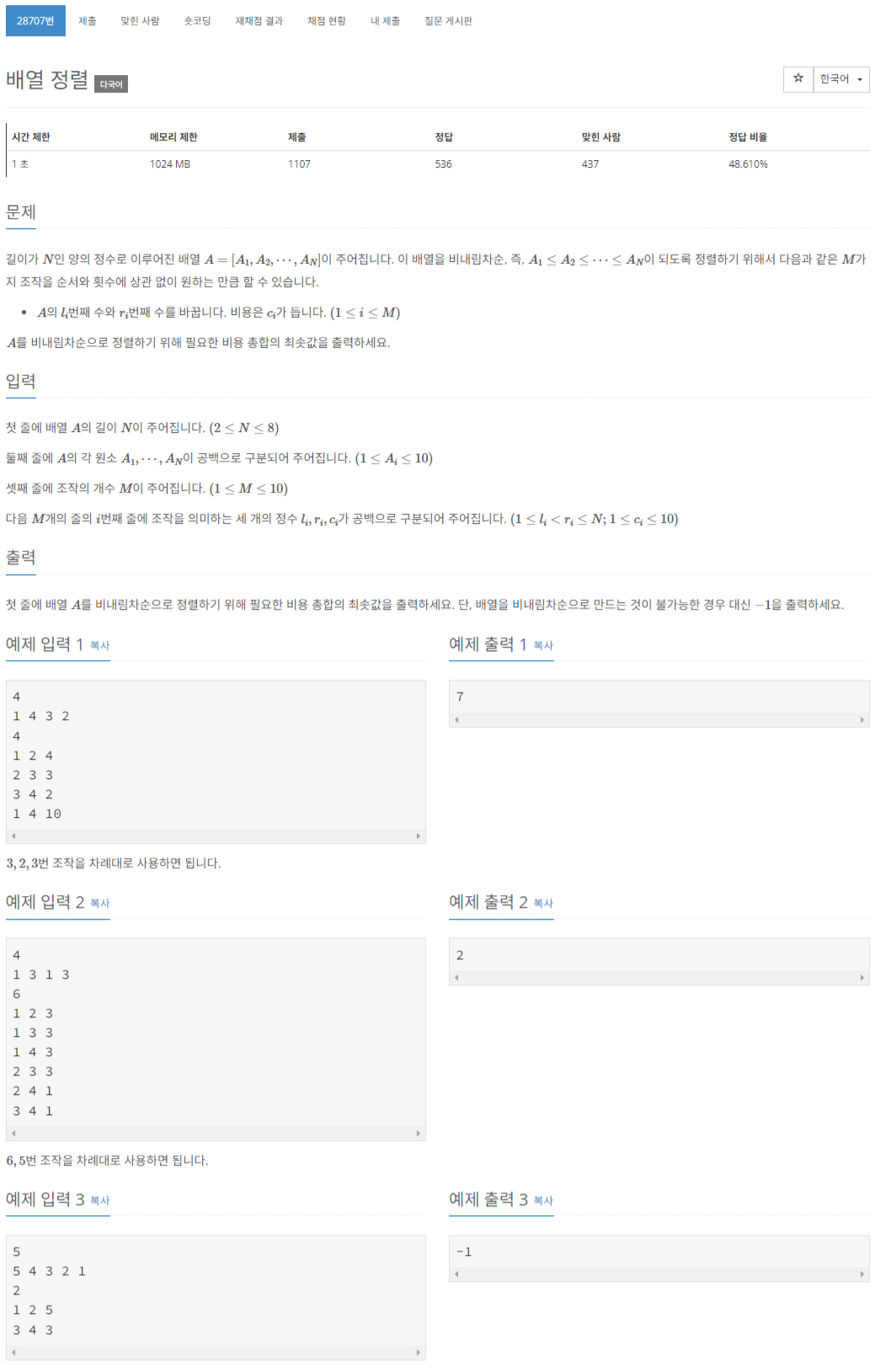 int state, cost; // state: 배열의 현재 상태, cost: 현재까지의 비용